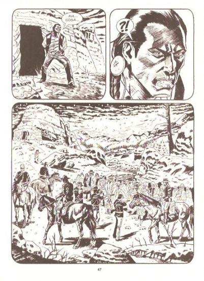 - Pag.32-34, nel raggiungere il campo dei rivoltosi, Saguaro prende coscienza delle conseguenze degli scavi di uranio dentro la riserva indiana: scorie radioattive e malattie genetiche.