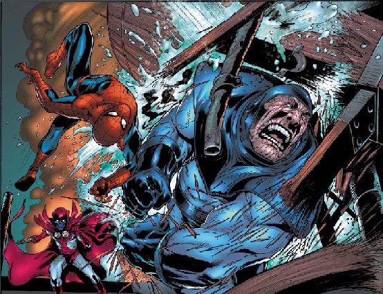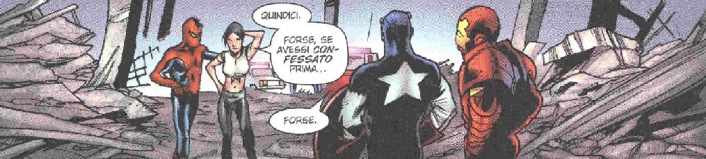 Personaggi, dicevo, presentati con una banalità disarmante. L'Uomo Ragno, Capitan America e Iron Man" I personaggi sono di una banalità disarmante."sono solo sagome di cartone che si recitano il loro ruolo sparando frasi zeppe di luoghi comuni. I malvagi sono stereotipati, scontati, al limite del grottesco. Un esempio: Crossfire guida un autobus scolastico per sequestrare alcuni bambini indossando uno sgargiantissimo costume rosso e bianco che nessuno nota. Geniale!