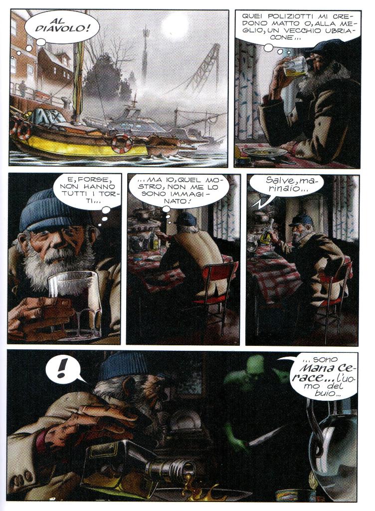 Chiaverotti è andato sul sicuro, con Mana Cerace, ed in fin dei conti è stato anche abbastanza onesto. Perché? La spiegazione è semplice: sua è infatti la paternità della reincarnazione (o come la si vuol chiamare) di Philip Crane, assurto a creatura del buio dopo la sua morte, uno dei villain a tuttoggi più rappresentativi dellimmaginario dylandoghiano, nonostante il numero esiguo di apparizioni (questa è la terza, oltre 15 anni dopo la sua ultima apparizione sulla serie regolare nel n.68, la quale a sua volta seguiva - a più ragionevole distanza - il debutto registrato nel n.34). Lapologo sullonestà deriva dal fatto che in 32 tavole lautore ha saputo inserire con consumata abilità tutti i principali topoi relativi a Mana Cerace: la filastrocca, il senso di oppressione, il confronto tra investigatore dellincubo e loggetto di indagine del medesimo, una velata forma di moralità di Mana, subito controbilanciata da unostentata follia omicida, la luce (qui concentrata in un fascio laser) come nemico invitto della tenebra, limmancabile finale aperto. Ciò ha permesso alla storia di filare liscia con un apprezzabile ritmo, senza apparenti cadute di stile, e per di più dimostrando come una eredità "storica" del genere sia gestibile anche nel volgere di poche pagine (per quanto a colori!), senza quindi la necessità di magnificare ad ogni costo un personaggio importante affibbiandogli special e/o giganti e/o pubblicazioni speciali, in ogni caso storie dallobbligato enorme numero - e dispendio - di pagine. Questo è un giudizio che sovviene però solo ad una seconda lettura, e proprio perché una certa politica portata avanti da altri autori della testata ha quasi come indotto il lettore ad aspettarsi storie lunghissime quando si parla di personaggi o eventi che hanno fatto la fortuna della testata (il recente speciale 23 con l'angelo Saul e gli "illuminati" ne è purtroppo un esempio appropriato). Passando oltre, è da notare come lo stile di scrittura di Chiaverotti sia rimasto praticamente identico rispetto a come lo si era lasciato, dagli albori di Brendon in poi, e stavolta tutto sommato lo si può anche leggere come una consolazione: invece di cercare sperimentazioni ad ogni costo, il "buon vecchio Chiaverotti" ci regala ancora una volta un assaggio di quel "buon vecchio Dylan" che fu, quando laltra penna principale ai testi era quella di un certo Sclavi. Dylan deve molto al papà di Mana. Quanti altri villain hanno fatto così tanta presa nellimmaginario del lettore dylandoghiano medio?"Quanti altri villain hanno fatto così tanta presa nellimmaginario del lettore dylandoghiano medio?"Mana Cerace tornerà, tornerà sempre, e non necessariamente in storie nuove, ma perché lui è a pieno titolo parte integrante di quel bagaglio di sensazioni che ormai accompagnano Dylan come il suo leggendario dopobarba! Un doveroso accenno ai disegni porta infine a verificare come luso del colore sia spesso un ispessimento dovuto, anche se non cercato, specie per un autore al suo esordio con il personaggio: avrebbe avuto più senso infatti ammirare le belle tavole di Evangelisti in bianco e nero, piuttosto che con un maquillage che rende loro un diffuso senso di staticità, che tra laltro si nota soprattutto in molte espressioni di Dylan; un colore troppo carico dà come lidea di una canzone suonata per la prima volta a Sanremo, ossia non con larrangiamento originale, così che se ne dà "ab origine" una percezione differente da quella che realmente è. È vero che poi le radio prendono a trasmettere la canzone con il suo arrangiamento vero e proprio: è quindi allora auspicabile che Evangelisti torni a raccontare il suo Dylan senza orpelli cromatici, per poter così gustare appieno le sue potenzialità espressive. Beh, meno male che nel buio tutto tace, e cè ancora Mana Cerace...