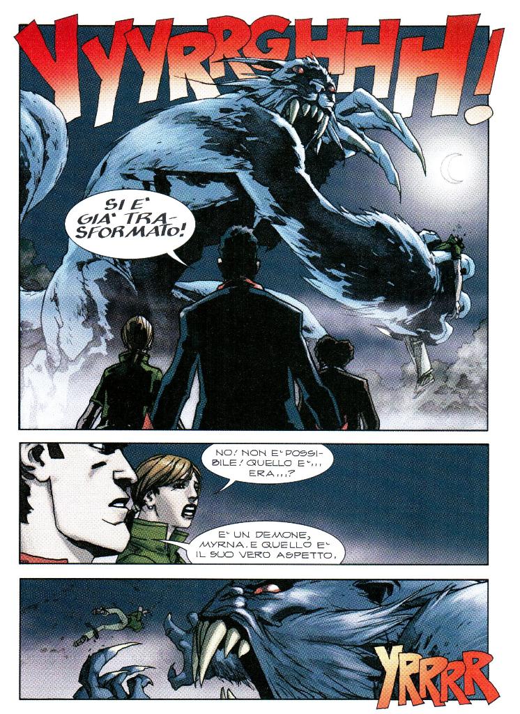 Vedere Dylan allo zoo è sempre unesperienza particolare, non è infatti propriamente questo il suo posto preferito; in conseguenza di ciò lo vediamo sovente contestare le argomentazioni di qualche addetto ai lavori ma, questa volta, notiamo che il suo spirito ambientalista viene messo presto da parte (o comunque smussato) in favore delle attenzioni alla bella coordinatrice dello zoo, la quale riesce a traslare la conversazione su altri temi in poco tempo: neppure i nuovi e strani ospiti dello zoo riescono pertanto a distrarlo dal fascino della nuova pulzella. Questa è in pratica la parte più piacevole della storia, anche perché il misterioso arcano viene svelato in due vignette (complice un criptico sogno), e lepilogo della storia è tanto veloce e frenetico da non dare il tempo a Dylan di rendersi utile. Alla fine dello scontro resta poi un'unica pagina in cui Faraci si preoccupa di confermarci ciò che avevamo già intuito, e di dare un senso più grande allintera vicenda chiamando in causa leterna lotta tra bene e male. I disegni di Camuncoli e i colori di D'Auria sono invece molto belli e ben curati. I due artisti si preoccupano di diversificare la tecnica a seconda del ritmo della sceneggiatura, creando unampia gamma di soluzioni spesso efficaci. Notevolmente particolareggiata lespressività dei volti (si veda ad esempio la vignetta 4 a pag. 11) e la regia dellultima parte, soprattutto per la dinamica delle inquadrature.La fiaba nera