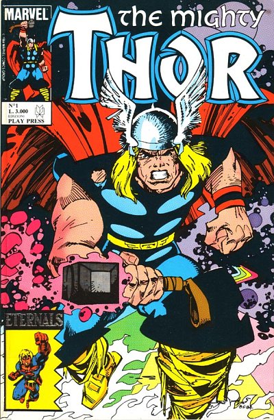 Contemporaneamente su Iron Man (Play Press) vengono pubblicati alcuni episodi saltati nel passaggio tra lEditoriale Corno e la Play Press. La gestione passa nel novanta alla Panini Comics, sotto il marchio Marvel Italia, che edita prima Capitan America & Thor e poi Thor (divenuto poi Thor & i Nuovi Vendicatori). Varie case editrici hanno pubblicato volumi a lui dedicati: nelle collane Play Special e Play Book (Play Press), Marvel Magazine, Wiz, Marvel Synchro e Marvel 100% (Panini Comics) e negli Oscar Mondadori.