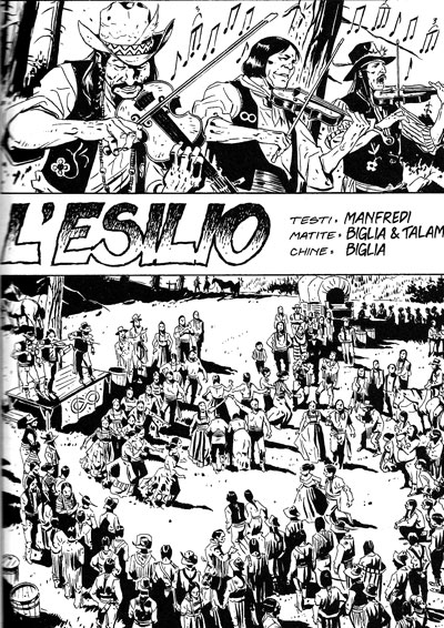 Insomma: ripongo il mio numero di MV, e ricomincia il mio temporale: mi torna in mente il conto del meccanico, il lavoro, il casino. Casca l’occhio sulla quarta di copertina, e guardo il promo del prossimo numero: wow! La versione indiana del mito delle Baccanti! Promette di essere interessante... A parte per Anja in primo piano e per Ned cavalier del bosco... Ma che c’entra: quella è colpa di Mastantuono, e che vuoi farci? Del resto, qui ha messo Poe ad impugnare una Derringer con due mani e Ned a guardare da una parte e sparare da un’altra... Dai: una, ciambella, senza il buco. Al massimo. Mai due in fila... "L'esilio/La Pista dei fuorilegge", Magico Vento 108-109, testi di Gianfranco Manfredi, disegni di Stefano Biglia, Giovanni Talami, Giuseppe Barbati e Frederic Volante, Sergio Bonelli Editore, 130 pag. cad. b/n, brossurati, usciti a metà gennaio e metà marzo 2007, €3,5 cad.