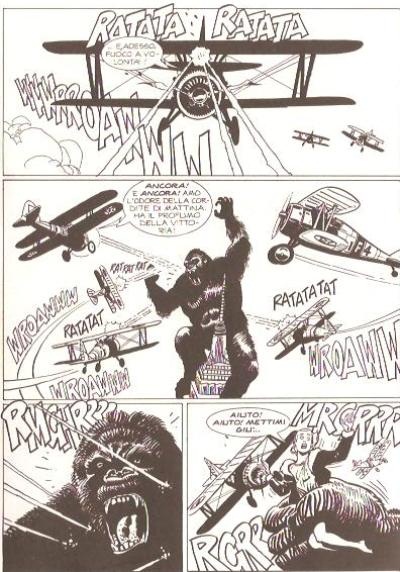 - Pag.8, la prima citazione dagli anni '30 è per King Kong, il gorilla gigante dal film americano del 1933 di C. Cooper e Ernest B. Schoedsack, qui raffigurato nel momento in cui in cima all'Empire State Building è attaccato dall'aviazione, mentre da pag.46-50 è impegnato nel classico duello con un tirannosauro. In realtà il gigantesco primate presente in questa storia è solo somigliante a King Kong, e a pag.113 si può assistere alla sua insospettabile identità segreta.