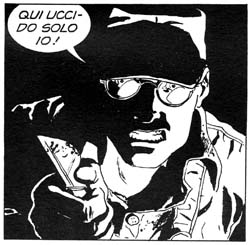 Qui invece Lopez lo spacciatore si becca un piombo nel petto e crepa. Niente di che, se non fosse che anche lui prima di lasciarci gli stracci ricama gravemente la spalla di Nick Raider! Attenzione, partenza ad handicapp per il nostro, che per tutto l'albo non potrà sparare e risulterà convalescente per tutte le 94 tavole.